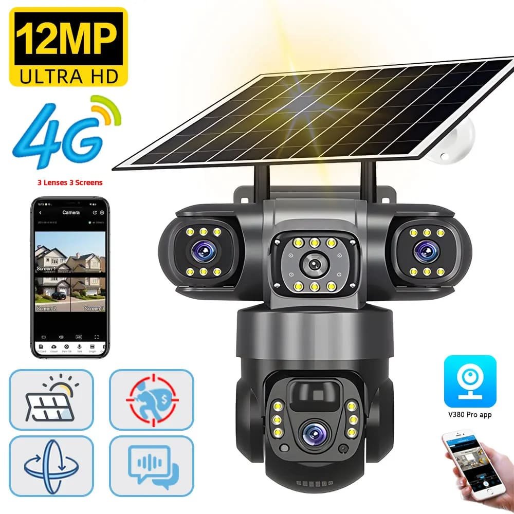 كاميرا شمسية ذكية بثلاث عدسات | تعمل بالطاقة الشمسية فقط | تدعم 4G